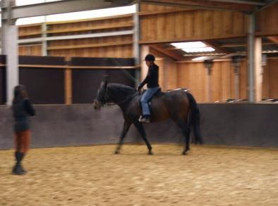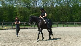 - appuyeren: voor het trainen van beide achterbenen die beurtelings naar het zwaartepunt moeten grijpen. En het paard moet goed tussen de