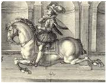 Enkele eeuwen later, rond 1700, verdwenen de vorsten van het front en werd de rijkunst een kunstvorm. Maar omdat de hele samenleving nog afhankelijk was van het paard (jagen, land bewerken, vervoersmiddel etc.) bezat men nog steeds de kennis en kunde het paard vakkundig op te leiden. Zodoende was men van het doel bevrijd, maar was men niet vervreemd van de (paardrijd)kunst. |
