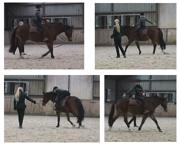 De oefeningen worden eerst in stap, daarna in draf en zo mogelijk in galop gedaan. Hierbij geldt dus dat als de stap nog teveel onbalans of spanning geeft de draf nog niet beoefend hoeft te worden.