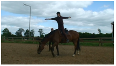 - teneinde we het paard in volledige losgelatenheid en ontspanning willen laten lopen, moeten we hierbij in ons eigen lichaam ook volledig losgelaten en ontspannen kunnen blijven, zodat we het paard niet storen in zijn beweging. Hiervoor is oefening noodzakelijk.