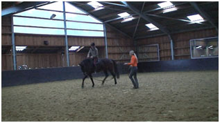 Elke dag had ik een half uur les met beide paarden. Al gauw bleek dat de twee erg aan elkaar hingen, waardoor de innerlijke rust nogal verstoord kon worden. Maar na een dag of twee werd dat gelukkig beter.
