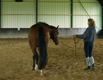 Wanneer men de longe aan de linker of rechter neusring bevestigt, trekt de buiging niet door het gehele lichaam van het paard (van de eerste halswervel t/m de staartwervels), waardoor de binnenheup niet bereikt kan worden.
