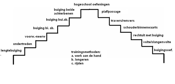 Voor de hogere rijkunst komt daar nog bij: - buiging van beide achterbenen tegelijkertijd (levade);