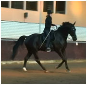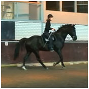 Zijn stuwende achterbeen en het daarmee gauw op de voorhand vallen zijn de grootste trainings items voor dit moment. De halve ophoudingen zijn hierbij zeer belangrijk om hem continue te herbalanceren.
